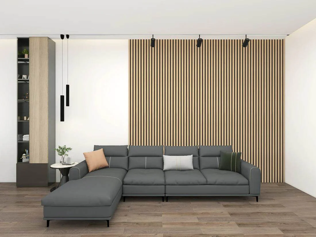 Elevate your interior spaces with our Acoustic Wood Veneer Wall Panels Series 1, a harmonious blend of aesthetics, acoustic excellence, and sustainability. Expertly crafted with genuine wood veneer slats and a recycled felt backing, these panels are available in two versatile sizes – 240x60cm and 300x60cm, providing flexibility to suit your specific design requirements. These panels are available in a variety of captivating colours, including Oak, Grey, Smoked Oak, Washed Oak, Black, and Walnut, allowing you to tailor your design to perfection.